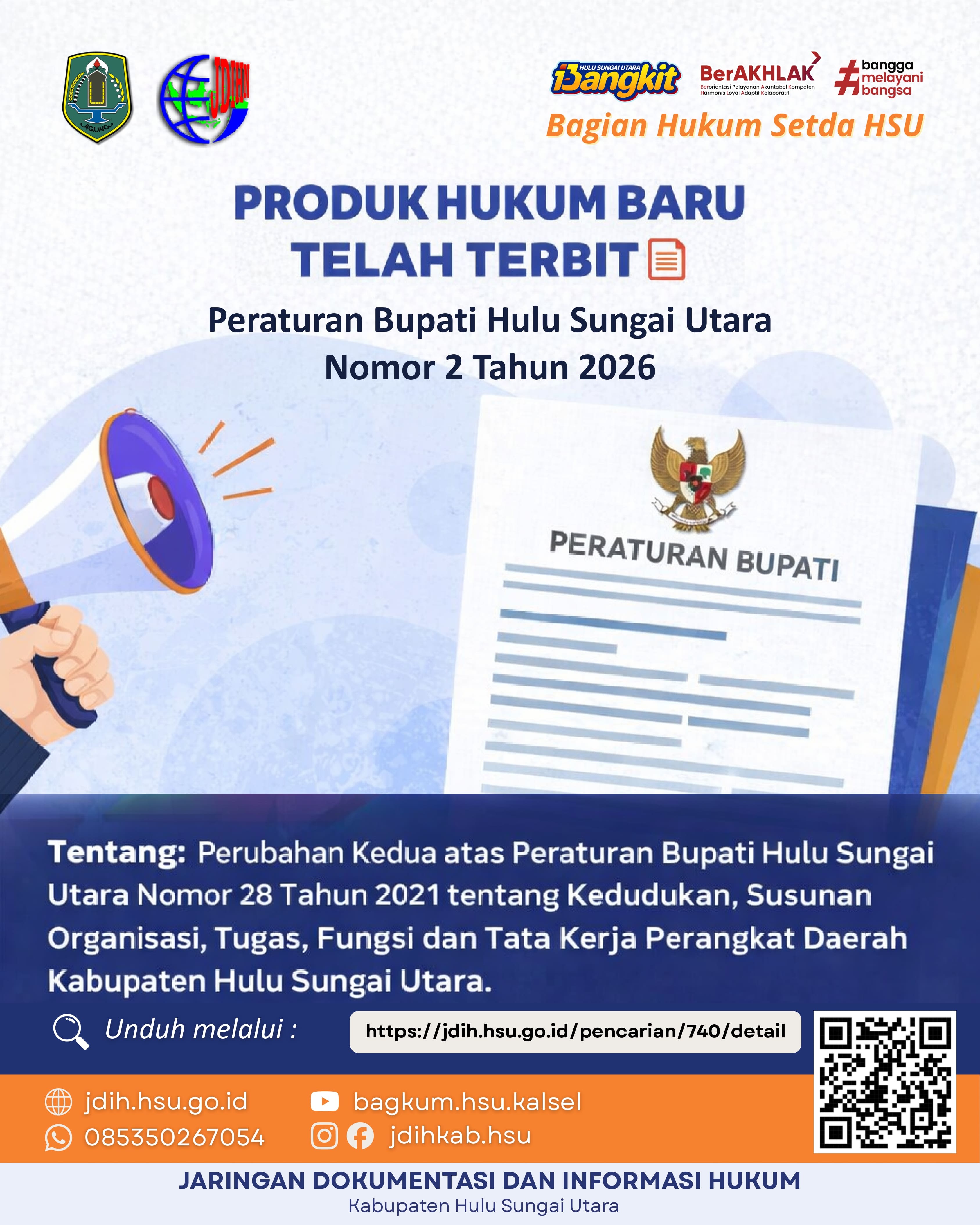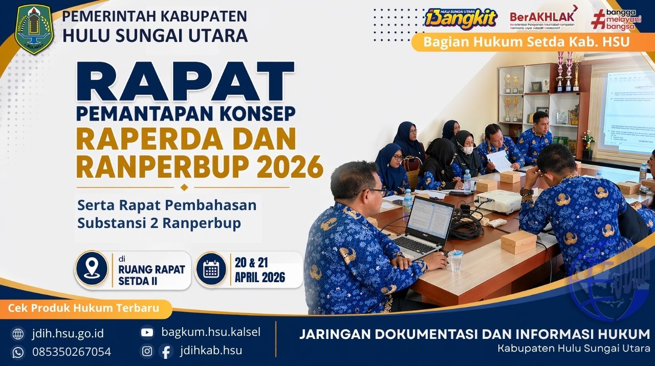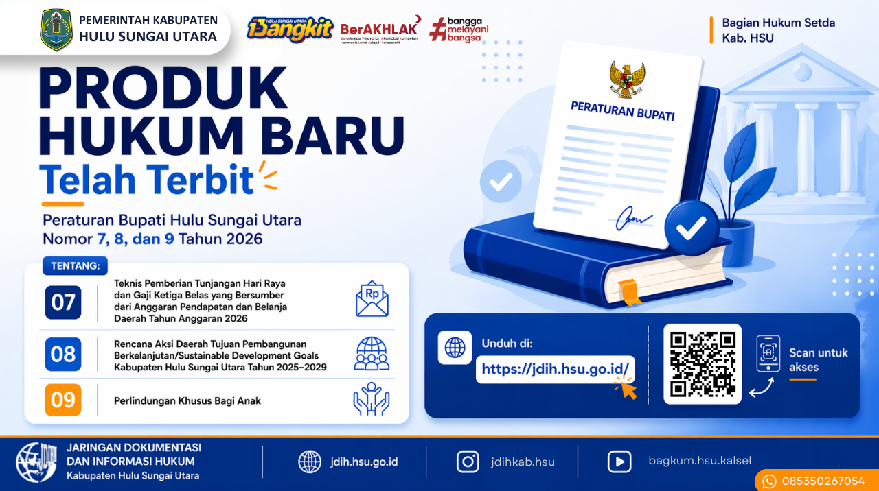 Pemerintah Kabupaten Hulu Sungai Utara melalui Bagian Hukum Sekretariat Daerah telah menerbitkan Per...